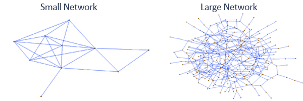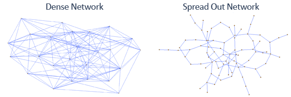 Network structure, which represents social structure, is what makes one network look different from another, and also determines the characteristics of a network. A network could be small or large, dense or spread out, have one, two, or many sub-communities and can contain any number of nodes and connections.